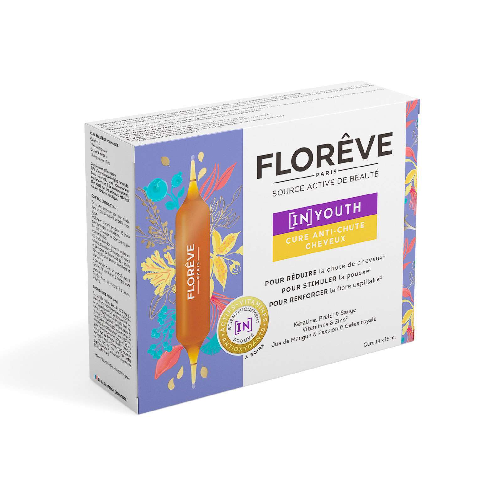 Metų laikų kaita, hormonų pusiausvyros stoka, stresas, tarša, netinkama mityba, kasdienis modeliavimas (šukavimas, tiesinimas, dažymas ir pan.) – tai vieni svarbiausių plaukų slinkimui įtakos turintys veiksniai. Florêve Paris sukūrė unikalią priemonę, padedančią kovoti su šiais veiksniais iš vidaus – (IN) YOUTH.