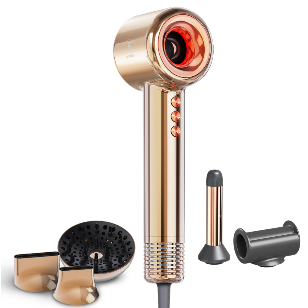 FERRLI IONIC plaukų džiovintuvas, tai patentuoto dizaino džiovintuvas, kuris yra tyliausias ir ultra lengvas rinkoje! Su šiuo džiovintuvo skirtingais antgaliais galėsite susiformuoti šukuoseną ar atsistatyti plaukus struktūros lygiu!