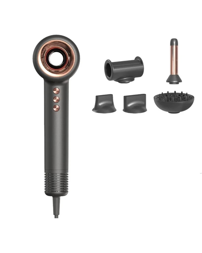4 skirtingi antgaliai, įskaitant difuzorių ir "Curl Bomb"garbanų sukimo antgalį kuris oro srautu sugauna sruogą.