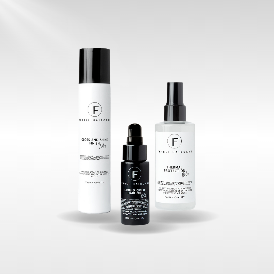 Leiskite savo plaukams spindėti kaip niekada anksčiau su „Ferrli Haircare LUXE RADIANCE" rinkiniu – aukščiausios kokybės produktų deriniu, kuris ne tik apsaugo plaukus, bet ir suteikia jiems intensyvų maitinimą bei akinančio žvilgesio. Šis rinkinys sukurtas tiems, kurie ieško visapusiško sprendimo savo grožio rutinai: nuo apsaugos nuo karščio iki tobulai užbaigto įvaizdžio.