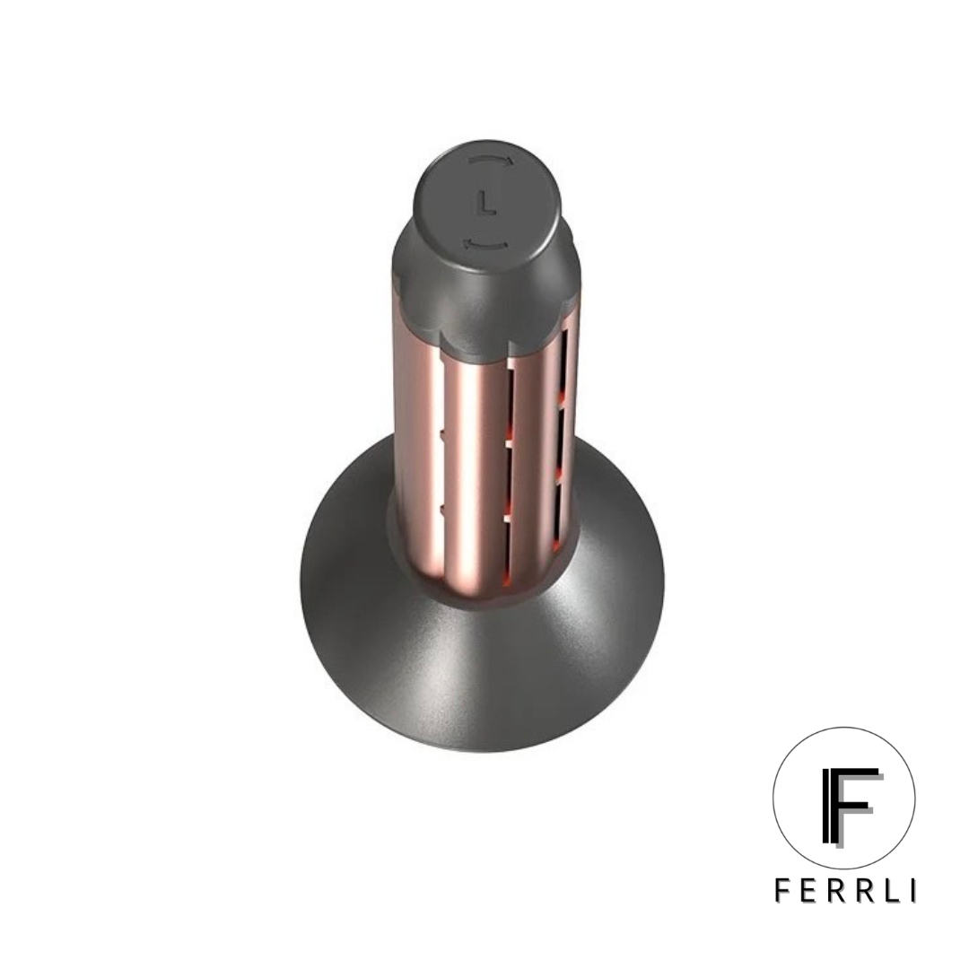 Neįtikėtino efektyvumo daugiafunkcis SUPERIONIC plaukų džiovintuvo antgalis, oro srove pats sugauna sruogą ir stilizuodamas padaro garbanas, bangas. Garbanos itin blizgios, žvilgančios dėl turmalino dangos. Kairė (LEFT) formavimo pusė.